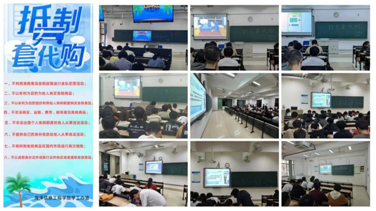 学院对抵制“套代购”教育高度重视,院学工办进行了精心部署和安排,在学生工作群和班级微信群中,发送抵制“套代购”宣传海报。同时,要求各班班长线下组织班级观看《抵制“套代购”》宣传视频,签名抵制“套代购”承诺书等活动,共计参与学生526人。