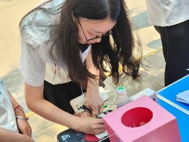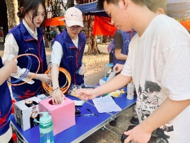 活动主要由三个心理健康游戏组成。一是“流转爱意”。同学之间将祝福语写在小纸条上,放入祝福箱,从中抽取一张,旨在表达在爱意流转的世界里,让每一份爱循环,兜兜转转回到自己身边。