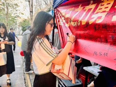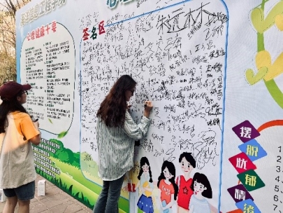 同学们在祝福墙和3·25善爱我横幅上,抒写自己对未来的憧憬及祝福,并大声说出自己的烦恼,释放压力。