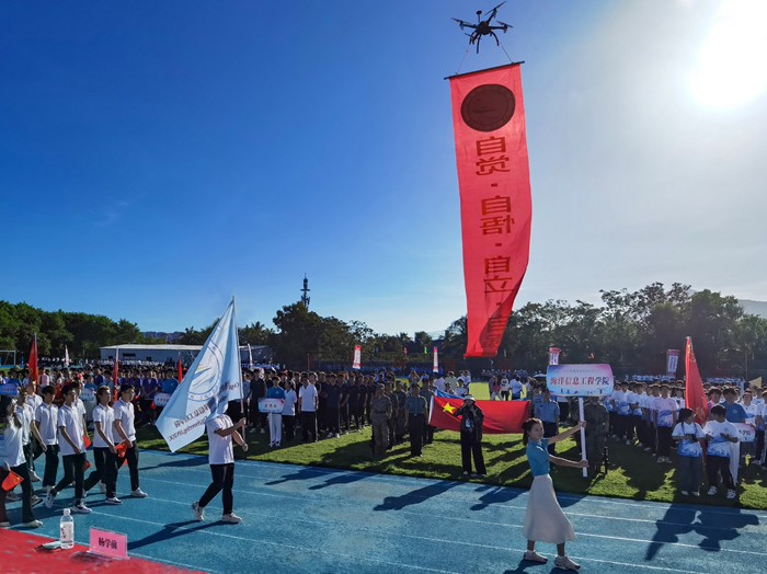 运动会在庄重的国歌声中拉开序幕。开幕式上,开云官网学生方阵的同学们英姿飒爽、步履整齐,学生自制的无人机上悬挂着“自觉、自悟、自立、自强”的院训条幅在方阵前引领,充分展示开云官网的专业特色;教工方阵的老师们昂首阔步,精神饱满,用笑容传达着他们积极向上、热情洋溢的精神风采。