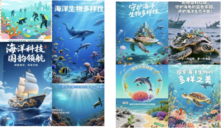 比赛要求参赛者围绕海洋生物多样性、海洋生态环境、海洋污染治理等主题,运用AI技术创作宣传海报和视频,并附上创作思路、技术应用等作品说明。在严格的初审环节中,专业教师评审小组从作品完整性、技术难度等维度筛选出一批优秀作品。