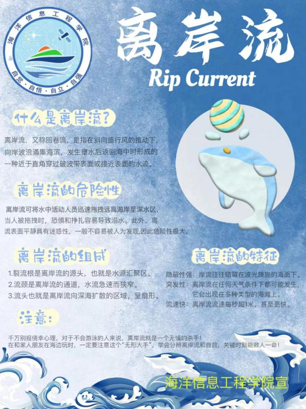为更好的落实做好开展离岸流风险宣传教育工作,2023年10月13-20日,开云kaiyun官方网站以主题班会、易班课程学习、线上知识竞赛、制作并张贴离岸流风险宣传教育海报等方式,组织开展了离岸流宣传教育,共有560余人参加。
