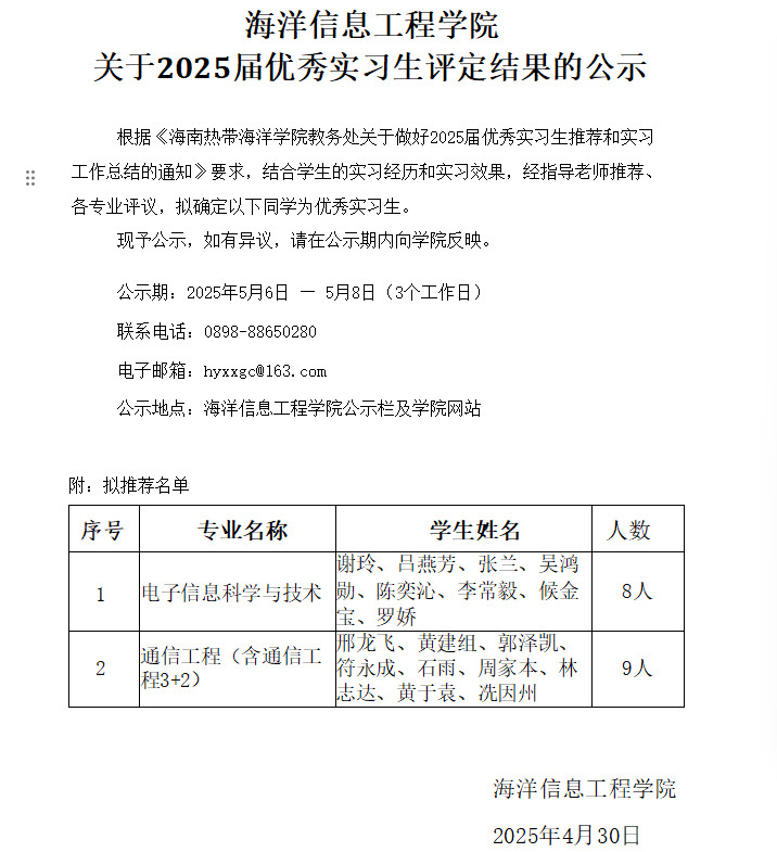 开云kaiyun官方网站关于2025届优秀实习生评定结果的公示