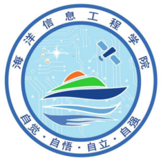 (6)中心的红绿蓝图案外形是一艘船,船的下面的两个蓝色的海流型曲线代表海洋。表示学院从事海洋信息技术和装备的研究。船也意味着乘风破浪,锐意进取。