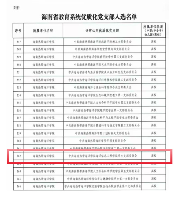 近日,中共海南省委教育工作委员会公布海南省教育系统优质化党支部入选名单,